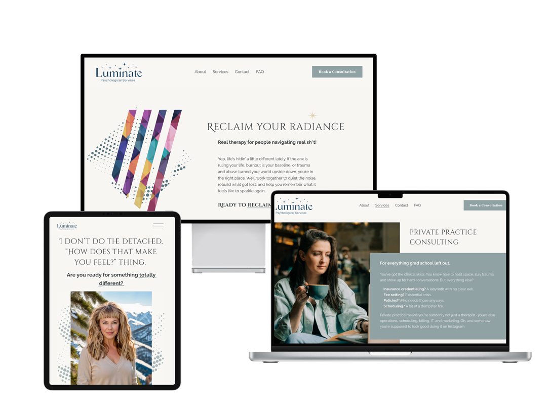 This full website design project created a comprehensive digital presence for Luminate Psychological Services. The goal was to establish a professional, welcoming online platform that reflects the practice's commitment to creating safe, inclusive spaces for healing.